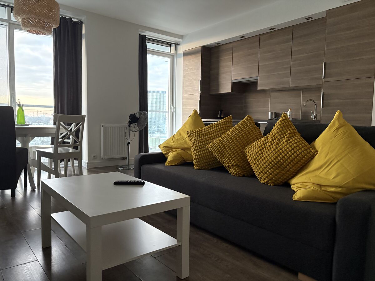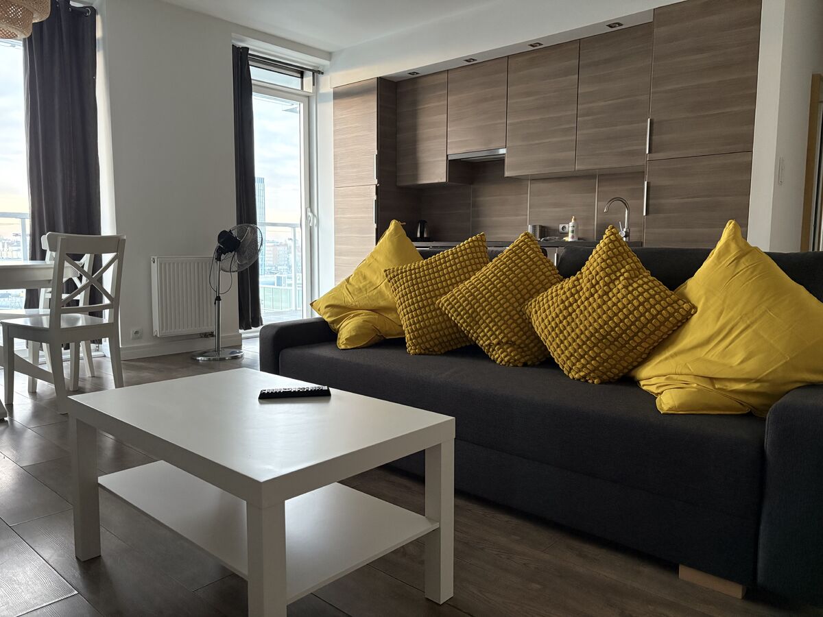 Современная квартира расположенная в центре города. Апартаменты состоят из гостиной с мини-кухней, отдельной спальни и ванной комнаты. Квартира оформлена минималистическом стиле, но функционально. Интерьер выполнен в ярких тонах с контрастными аксессуарами, которые создают уютную обстановку. Элегантная спальня обеспечит отдых и удобство. Квартира расположена на 10-м этаже, где из окон открывается прекрасный вид, особенно ночью. Квартира находится в новом здании с охраной, гарантируя нашим гостям высокий уровень безопасности. У нас также есть автостоянка под зданием (за дополнительную плату). Отличный отель для прекрасных гостей - в 5 минутах ходьбы от МТР и железнодорожного вокзала.